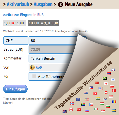 Die gemeinsame Gruppenabrechnung inklusive Währungsrechner.
